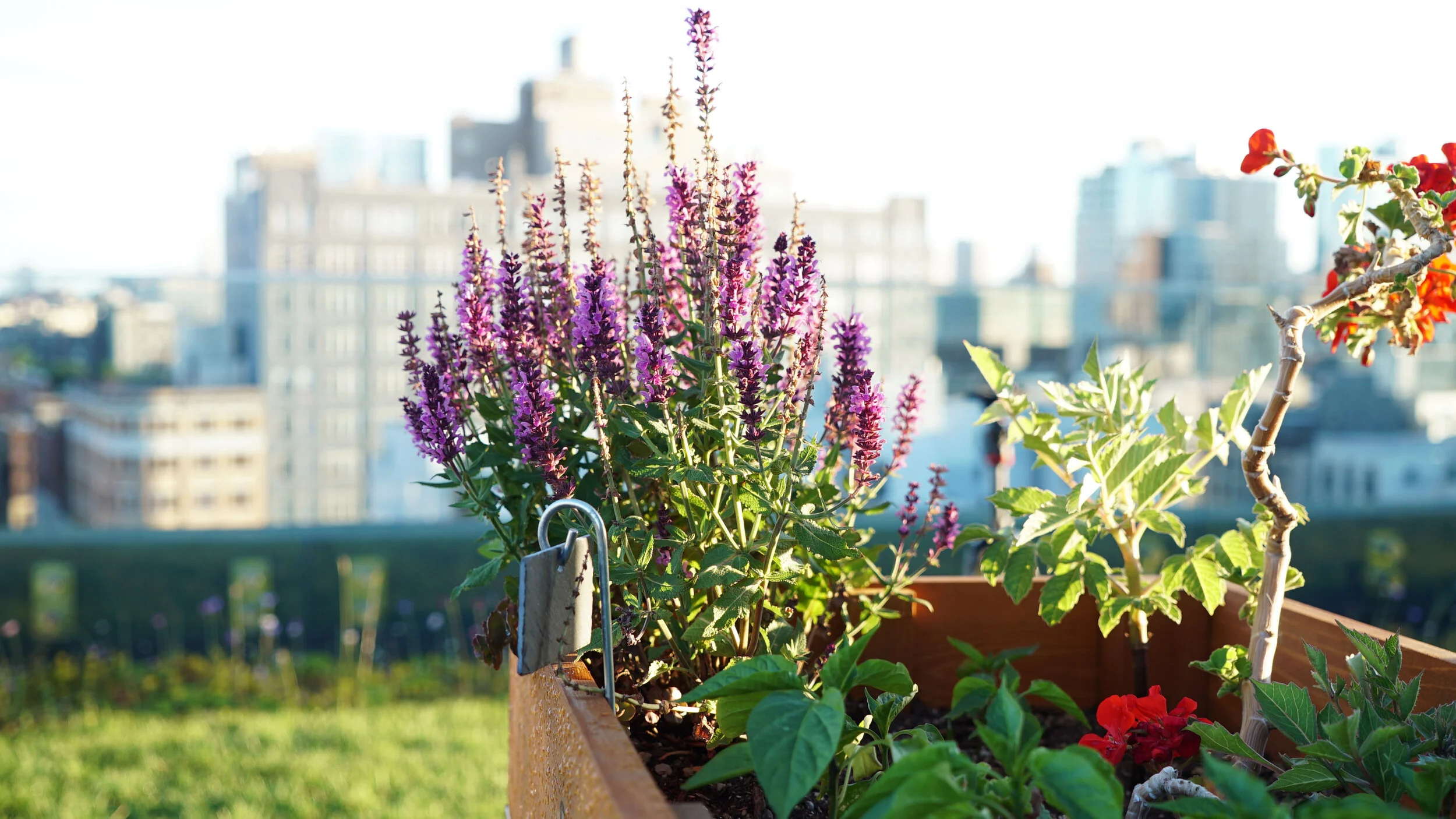 Built in 2019, this 1,900sf green roof includes a lawn, sedum planters, and a mix of flowers and small shrubs that reflect the unique creativity of the space’s residents.