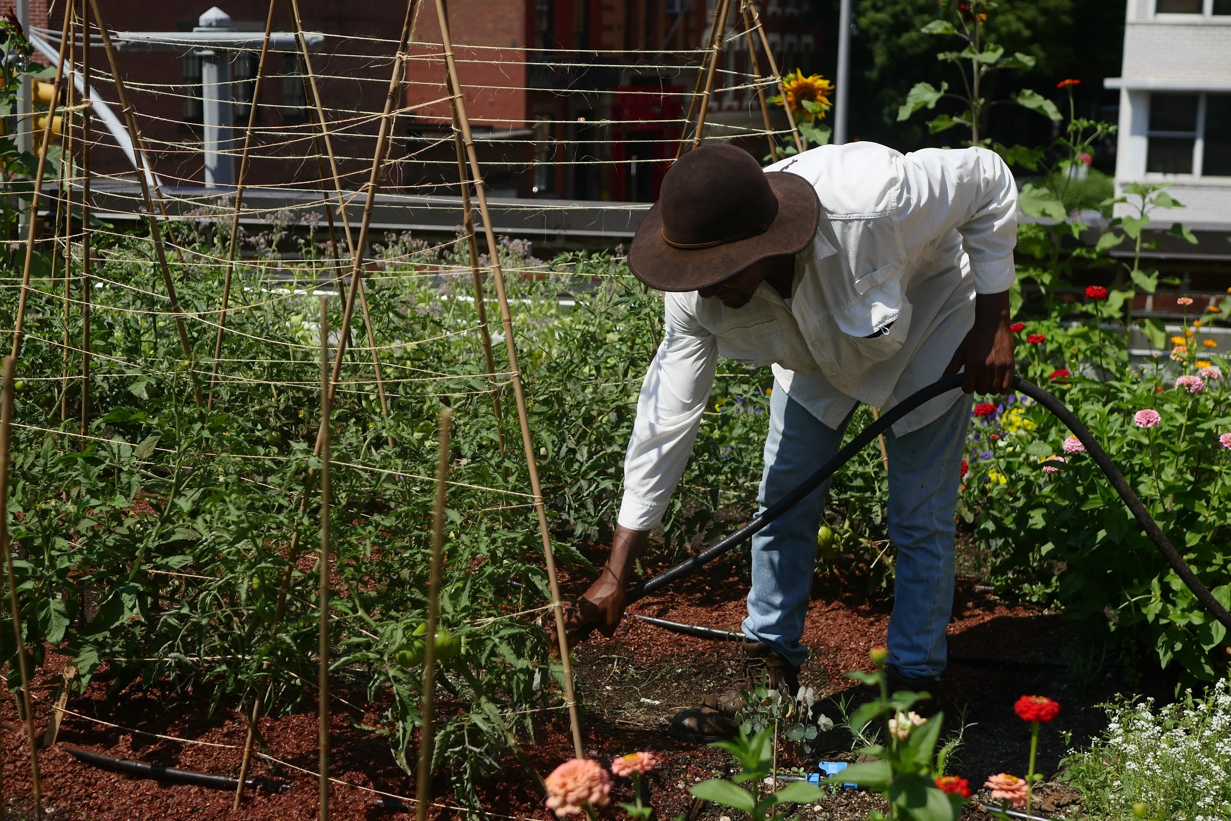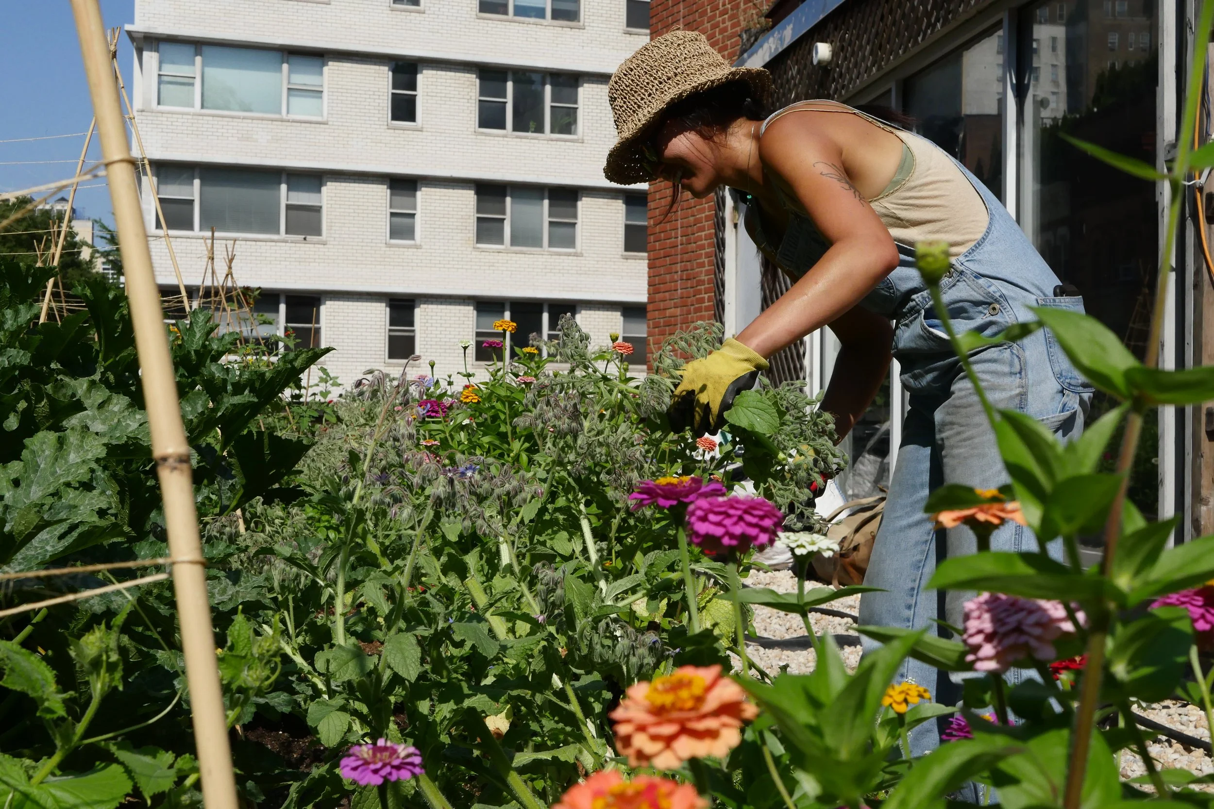 This 1,000 sf green roof vegetable garden was built in 2012, and supplies fresh vegetables and herbs to Rosemary’s West Village, the Italian-inspired restaurant downstairs.