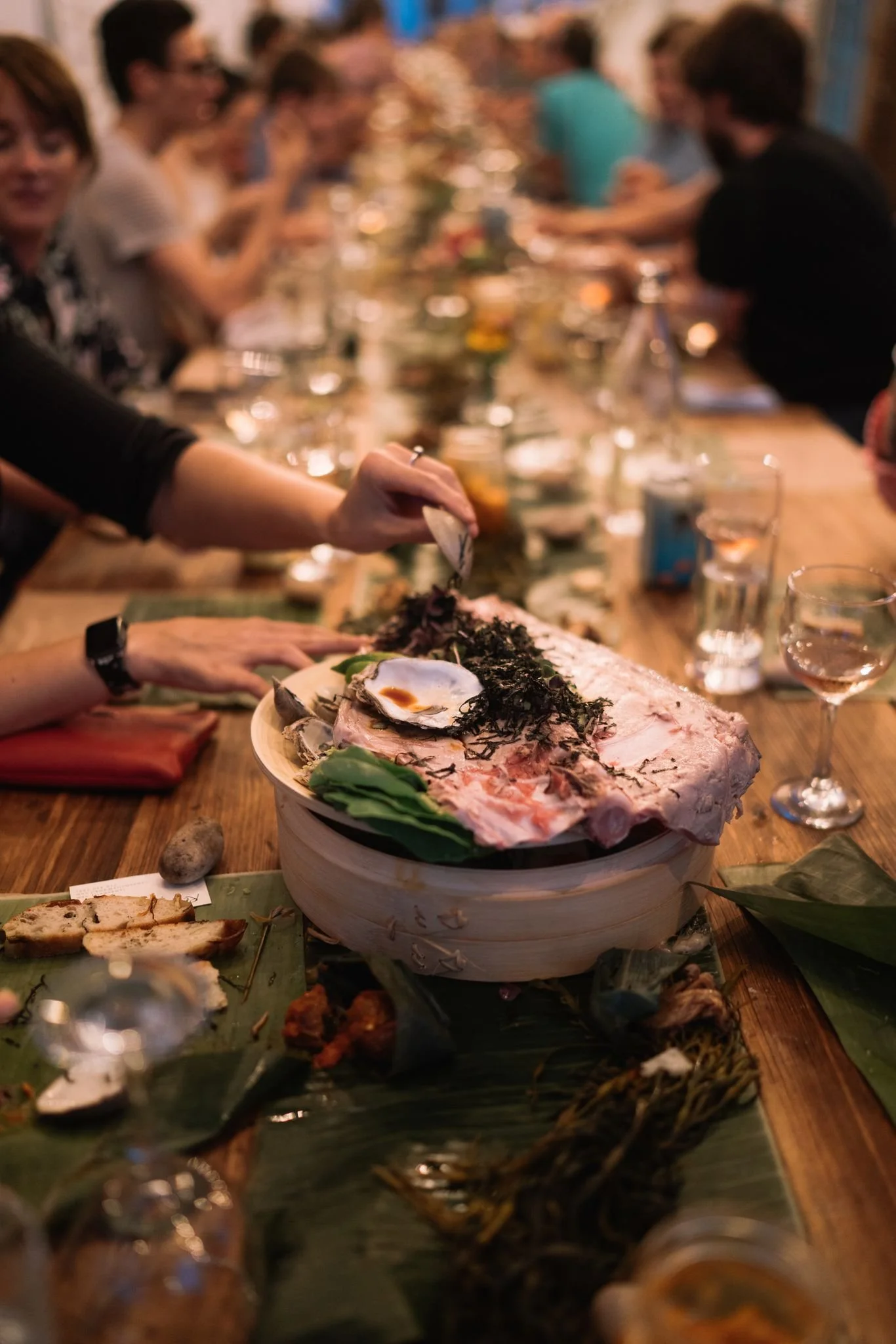 Seven years ago, when we were envisioning an event that would reimagine our food system, we met Winston Chiu of BonBite and More Than a Meal. Early editions of Compost Dinner focused mainly on creating a meal from food headed towards the compost bin. We reused stale bread, repurposed scrapped fish parts, and transformed leftover market veg into a feast. Each year since then, the menu has become an ever more exquisite celebration of ingredients, and the ecosystem of organizations working together has deepened the dinner's impact and reach, emphasizing our goals for care-focused circular economies.