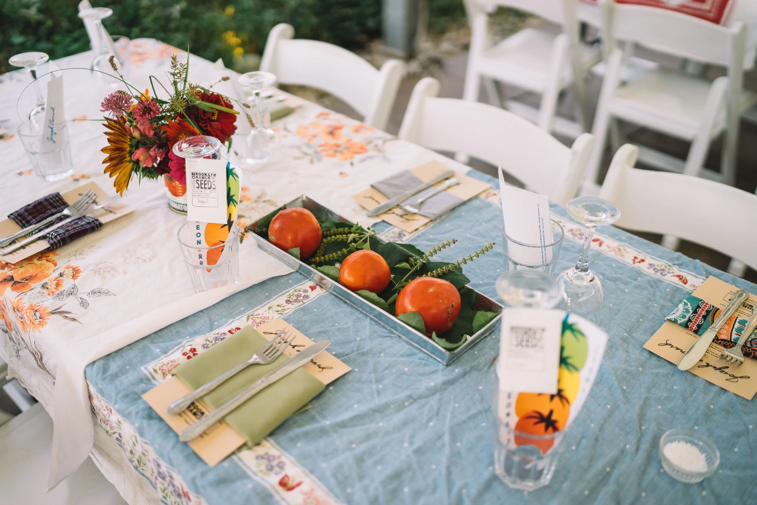 This dinner celebrates our *unabashedly* favorite season on the farmers wheel, experienced through the tomato's versatility, her supple shapes, striking color palettes, diverse sizes, and of course, that sun-suctioned sweetness.